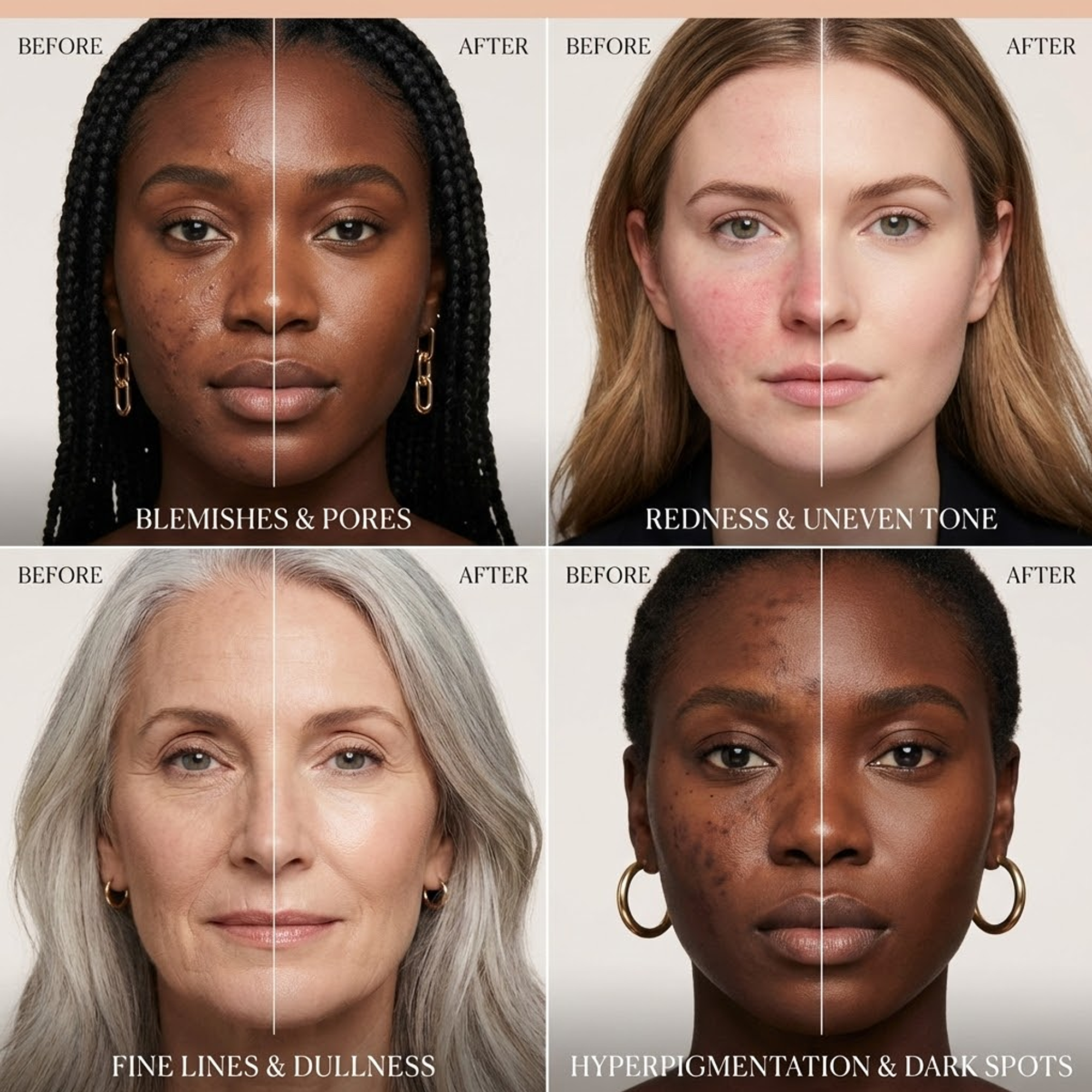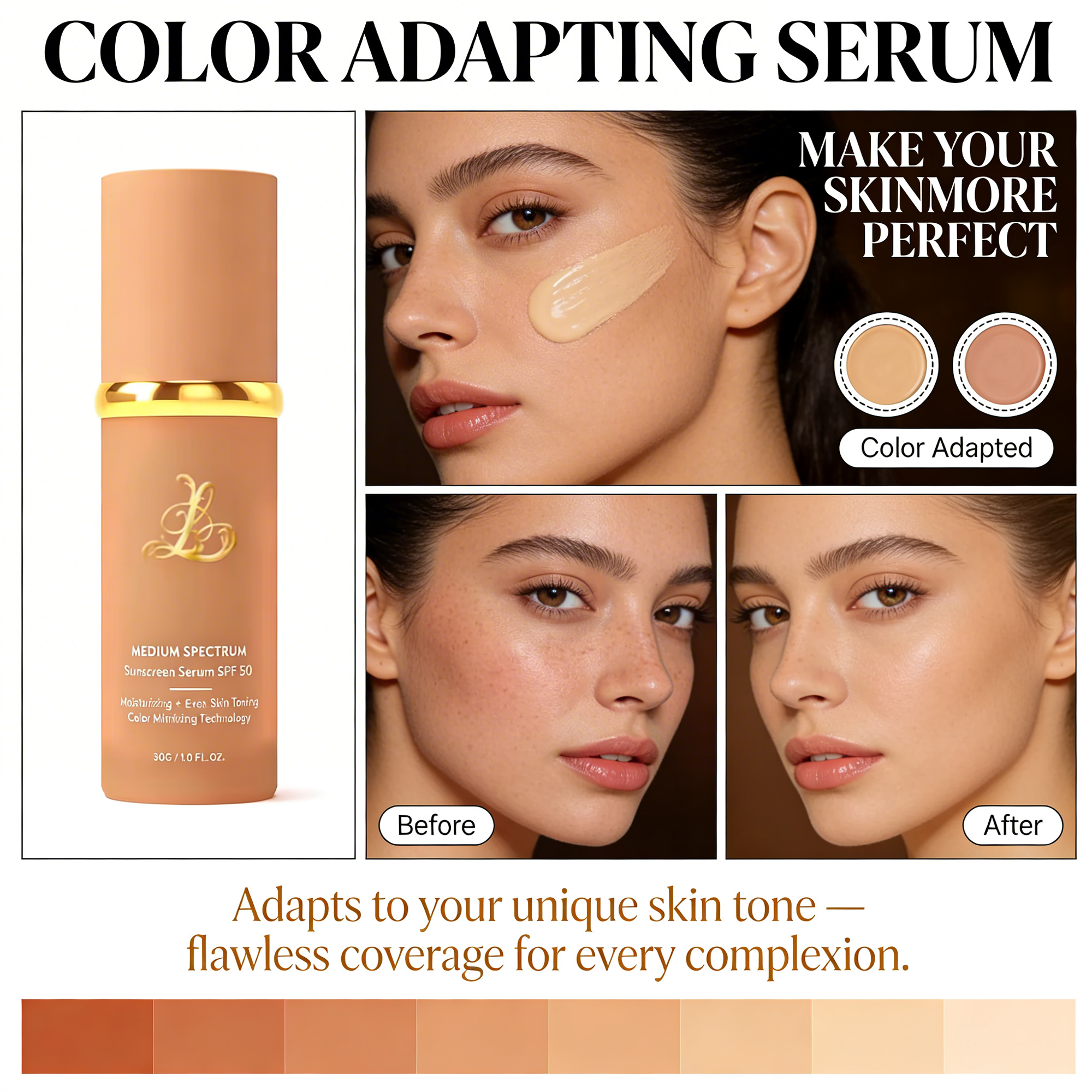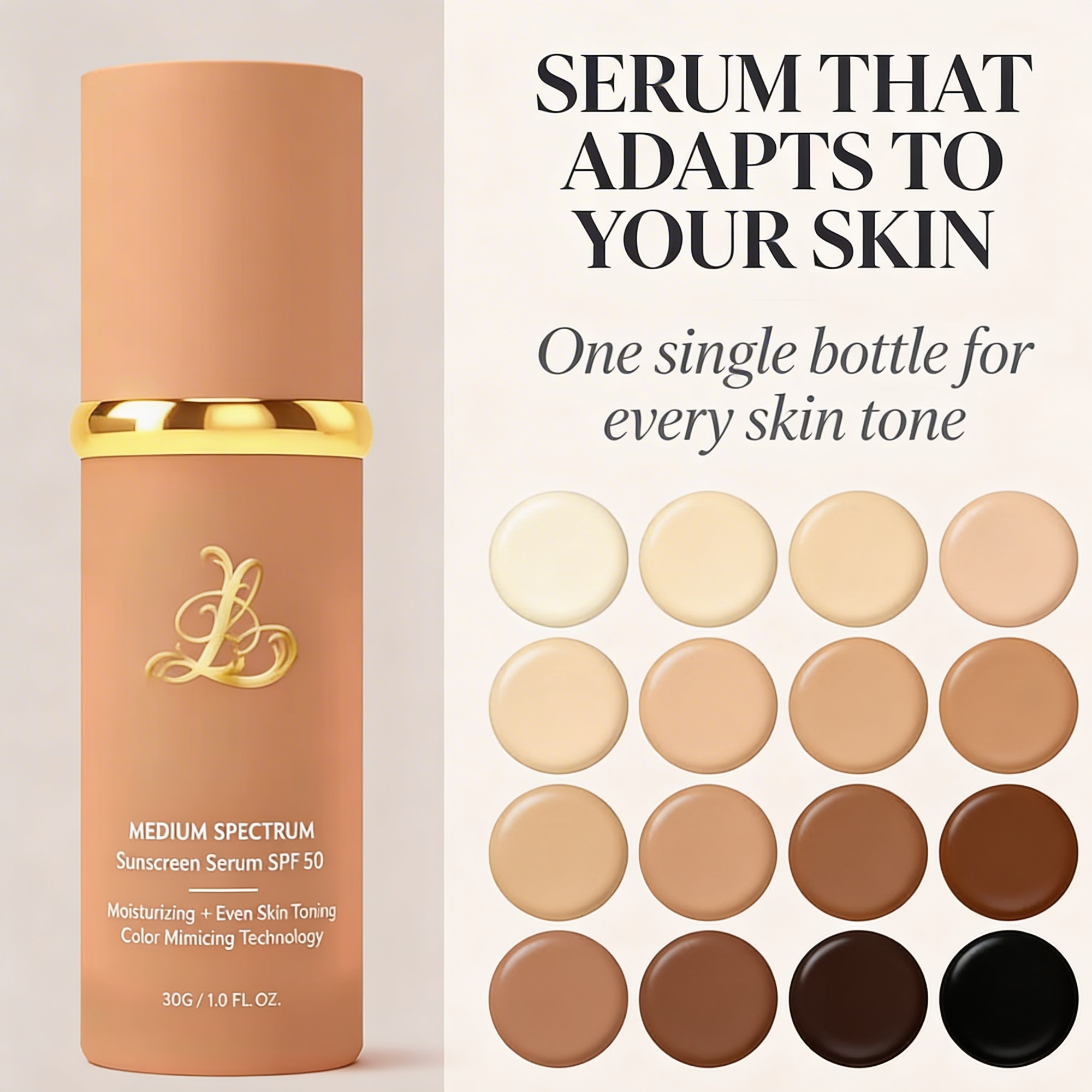 The anti-aging foundation that effortlessly adapts to your skin tone. Flawless coverage, deep hydration, and maximum UV protection in one drop.